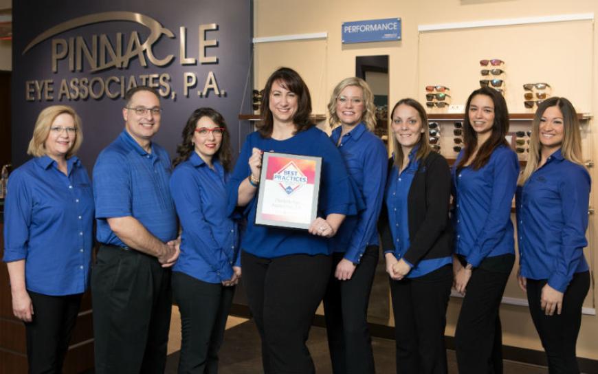 Congratulations to Dr. Alfieri and Pinnacle Eye Associates! This year’s honorees will collaborate to tackle the most demanding chal-lenges of contemporary optometric practice. For more information about the program, its honorees (both current and past), and updates about how they are working together to advance the profession, visit www.eyecarebestpractices.com.