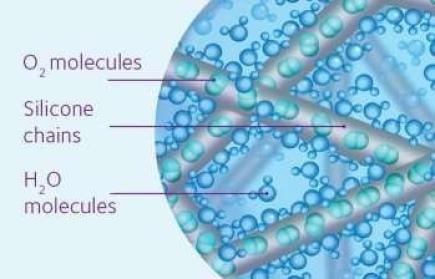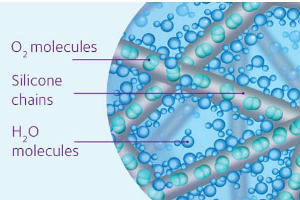 - In a matrix of long silicone chains, hydrogen bonds form to lock water molecules within the lens, for good wettability and a comfortable wearing experience.