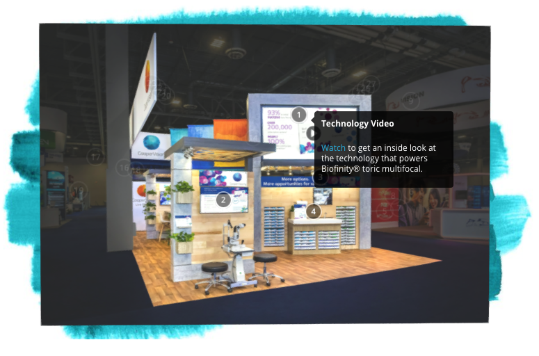 The virtual booth features a 3D rendering of CooperVision’s actual exhibit, as well as multimedia materials that showcase the latest news and product information from the company.