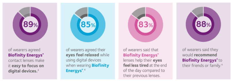 [11] CVI data on file, 2018. Online survey Biofinity Energys® CL wearers, n = 200.