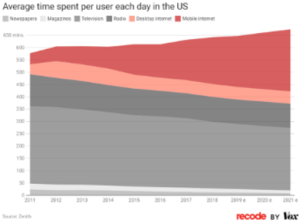 Figure 1. Average Time Spent Reading Various Media Per User Each Day in the U.S.3