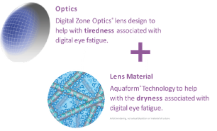 Figure 2. Biofinity Energys® - Combining Optical and Lens Material Technology to Address Key Symptoms of Digital Eye Fatigue.