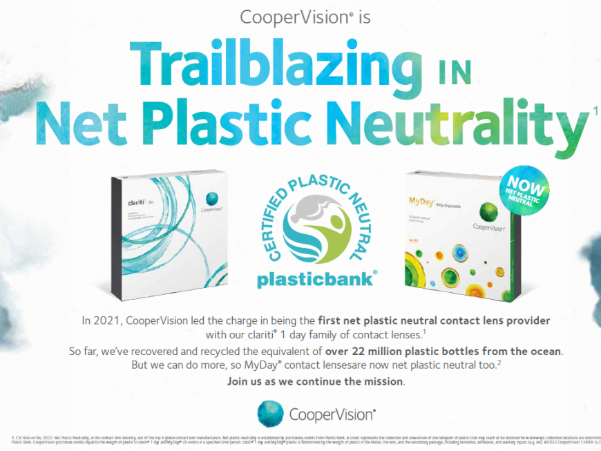 For more information about the CooperVision net plastic neutral initiative and its commitment to sustainability, visit sustainability.coopervision.com.
