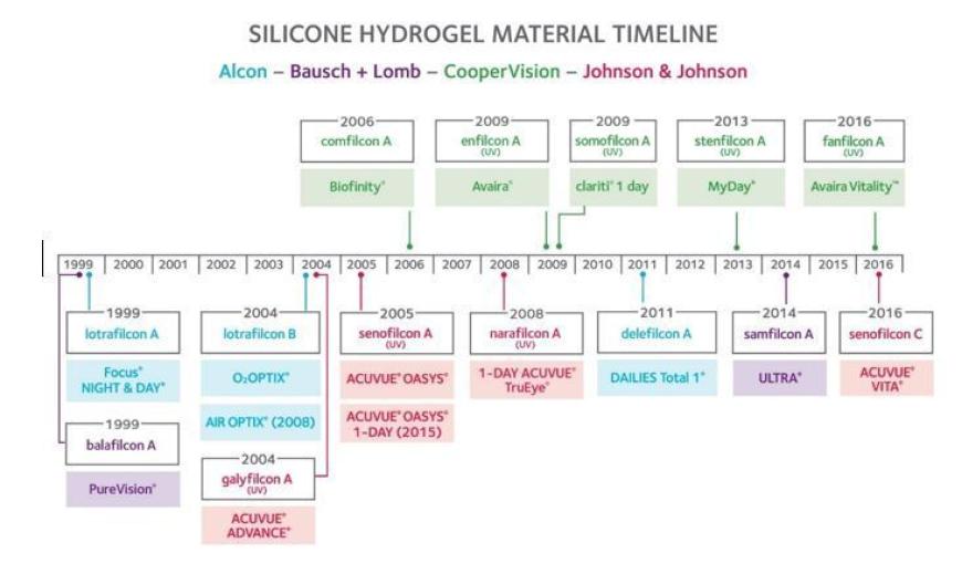 How long ago did your work with silicone hydrogel materials start?