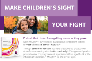 Additional MiSight® 1 day materials are available for ECPs, who are encouraged to enhance their in-office educational resources in conjunction with the campaign. ECPs can also share their commitment to myopia control and the news that they are MiSight® 1 day certified prescribers on their social media accounts and practice websites to heighten visibility with prospective families who’ve seen the campaign. CooperVision Myopia Management Specialists are available for additional support resources and further questions.