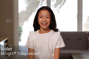 *Indications for use: MiSight® 1 day (omafilcon A) soft (hydrophilic) contact lenses for daily wear are indicated for the correction of myopic ametropia and for slowing the progression of myopia in children with non-diseased eyes, who at the initiation of treatment are 8-12 years of age and have a refraction of -0.75 to -4.00 diopters (spherical equivalent) with ≤ 0.75 diopters of astigmatism. The lens is to be discarded after each removal.