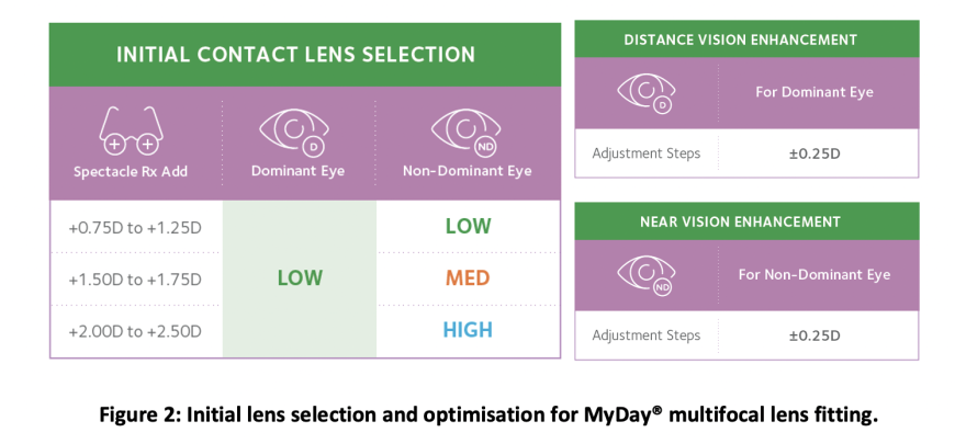 Fitting optimal multifocal contact lenses will look different for each patient with presbyopia in practice, with decisions on lens type, material and replacement schedule influenced by lens wear history, ocular physiology, lifestyle and expectations. Concerns often raised by eye care professionals previously have been that multifocal contact lenses should cover a wide prescription range and be easy to fit to help minimize chair time.5