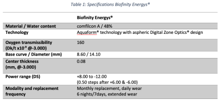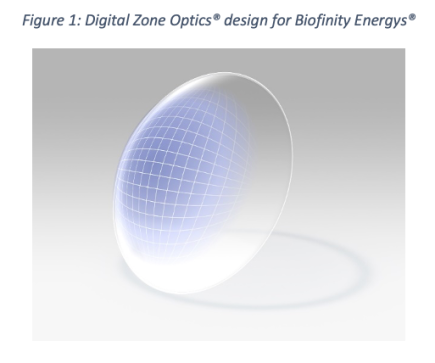 Wearing a contact lens designed for these tasks adds an additional challenge to the tear film and increases the chance of ocular discomfort and fatigue. Results shared here illustrate that beyond general advice for the management of digital eye strain, relief from accommodative stress is possible via use of a lens designed to help alleviate ocular tiredness**. MyDay Energys® and Biofinity Energys® have been designed to meet the visual demands of patients’ modern lifestyles and may benefit both existing and new contact lens wearers who routinely use digital devices.