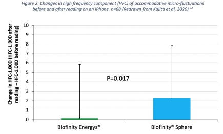 ** Based on a statistically significant difference of the mean change in Accommodative Microfluctuations and when compared to Biofinity sphere after reading on an iPhone for 20 minutes.