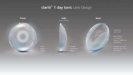 clariti® 1 day toric delivers excellent optical performance and consistent correction of astigmatism. Additionally, clariti® 1 day toric’s smooth continuous ballast design helps provide optimal comfort and stability.
