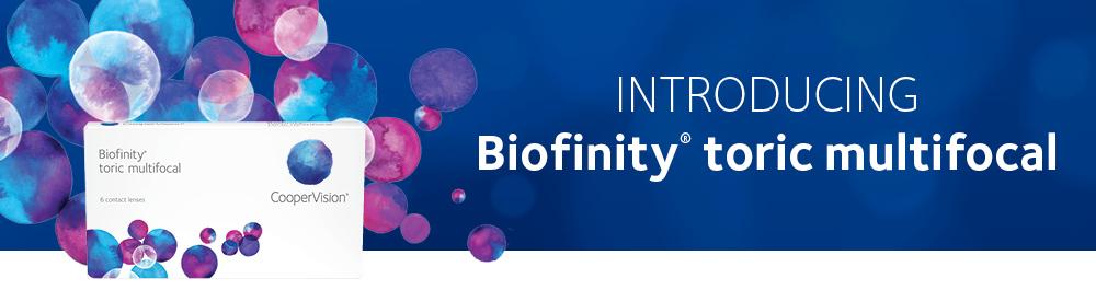 CooperVision Biofinity® toric multifocal contact lenses combine the comfort and proven optical designs of Biofinity® toric—the most prescribed toric lens on the market—and Biofinity® multifocal.3