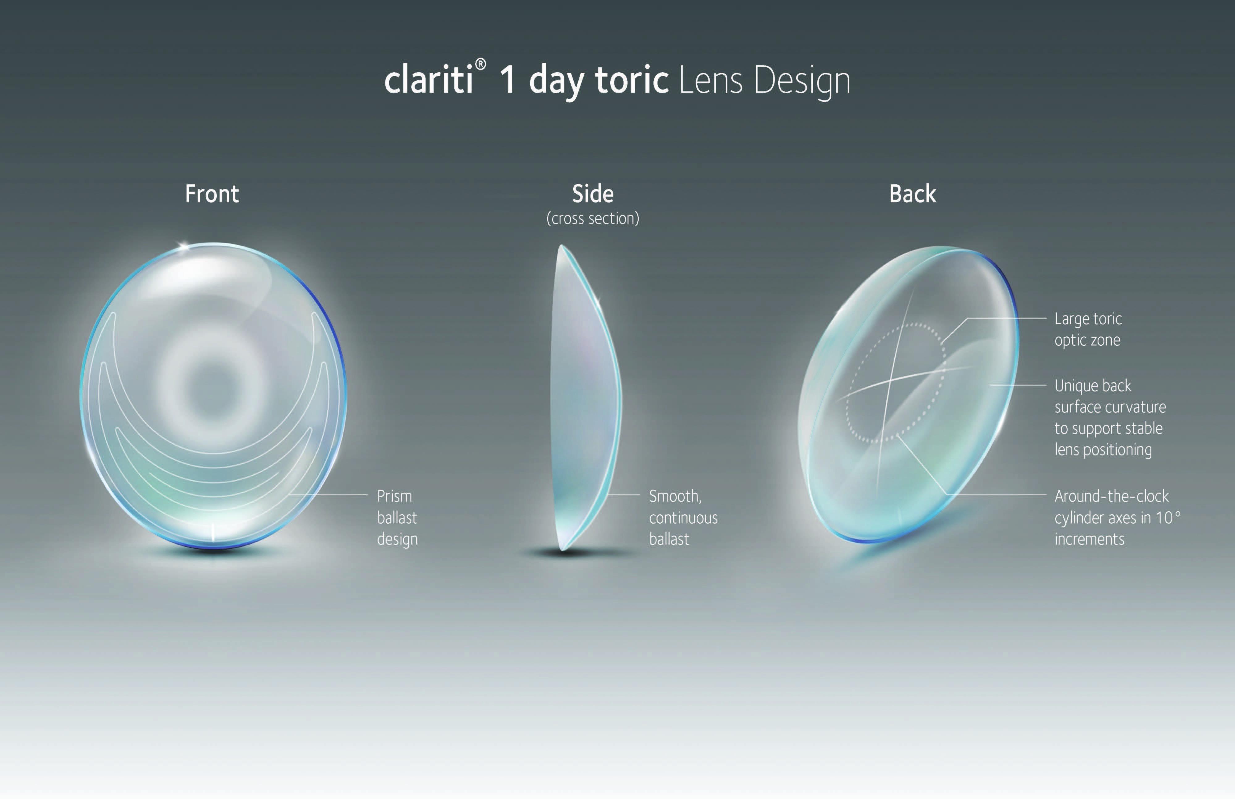 clariti® 1 day toric offers a high-precision design so your patients can experience excellent optical performance and consistent correction of astigmatism. This lens has around the clock axes, enabling you to provide coverage for most patients with astigmatism‡.
