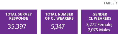 The visual benefits of CLs produced an interesting result in the survey. Nearly eight out of ten CL wearers agreed with the statement “I see better in CLs”. Such high levels of patient satisfaction with their vision may be surprising to some ECPs. For example, recently generated data from US ECPs found on average just 50% felt correction with soft toric lenses provides the same visual acuity as a patient’s up to date spectacle prescription.15 It is also noteworthy that the high level of agreement for “seeing better in CLs” held true for the presbyopic group aged 55 and over.14 This age group requires multifocal CLs, monovision or additional near vision spectacles to correct their vision fully. Younger people however are more likely to purchase contact lenses, with 17% of 16-24 year olds, and 14% of 25-34 year old compared to just 5% of 45-54 year olds saying they had done so within the last two years.16 The relatively low penetration of CL use for the presbyopic age group perhaps suggests that ECPs are more concerned CL success is harder to achieve with these patients, with poor vision being one of the reasons for that. In that context, the positive visual benefits reported by presbyopes in the survey are encouraging to help ECPs feel confident to recommend CLs more routinely to this group of patients. Overall, it should be recognised that the visual benefits experienced by lens wearers likely go beyond high contrast Snellen acuity, instead encompassing a more general sense of visual freedom through no loss of peripheral vision related to the spectacle frame, and for presbyopes potentially, gaze-independent viewing.